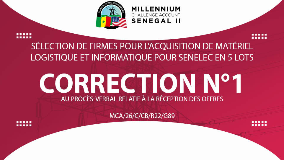 Ce site web a été développé grâce à une subvention accordée par le peuple des États-Unis au Sénégal par l’intermédiaire de la Millennium Challenge Corporation, conformément aux termes d’un Compact conclu entre les deux pays. Les informations fournies sur ce site web ne sont pas des informations officielles du gouvernement américain et ne représentent pas les points de vue ou les positions du gouvernement américain ou de la Millennium Challenge Corporation.